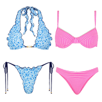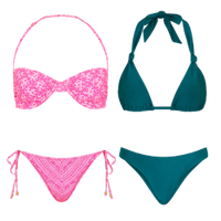 It's recommended to hand wash in cold water after use. If using a machine, opt for a gentle cycle and only with a delicates bag. Do not soak or bleach. Line dry or lay flat in a shady area, as some colors may fade in direct sunlight. Remove excess water promptly and avoid packing while wet, as some colors may bleed or transfer. Do not dry clean, iron, or tumble dry, even on a gentle cycle, as these can damage, distort, or discolor your swimwear.