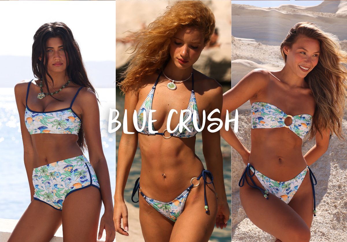 The prints: Dream Flower, Mystic Moon, Bubble Berry, Blue Crush, Wild Skies, Starry Seas, Frangipani Fizz, and Skinny Dip